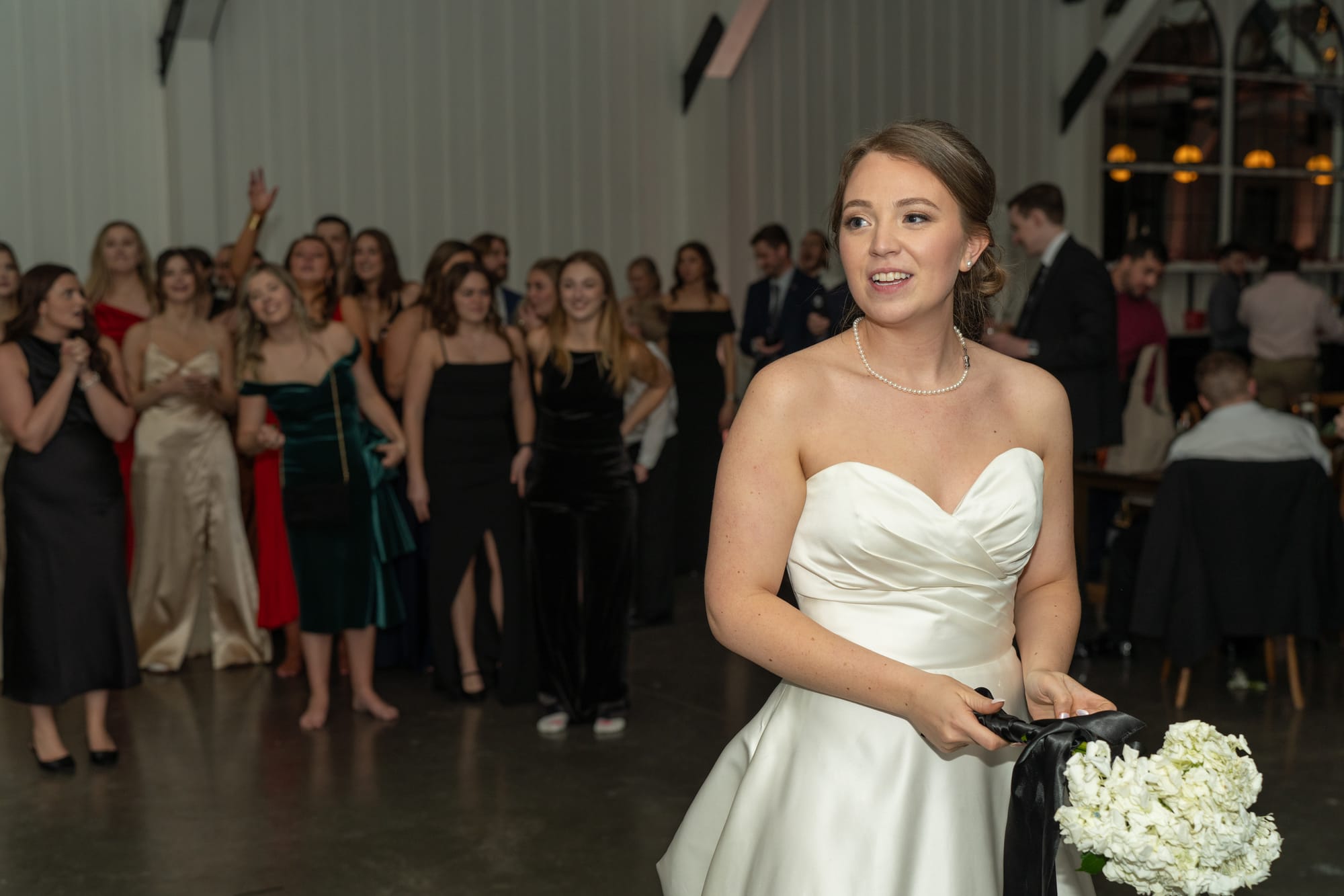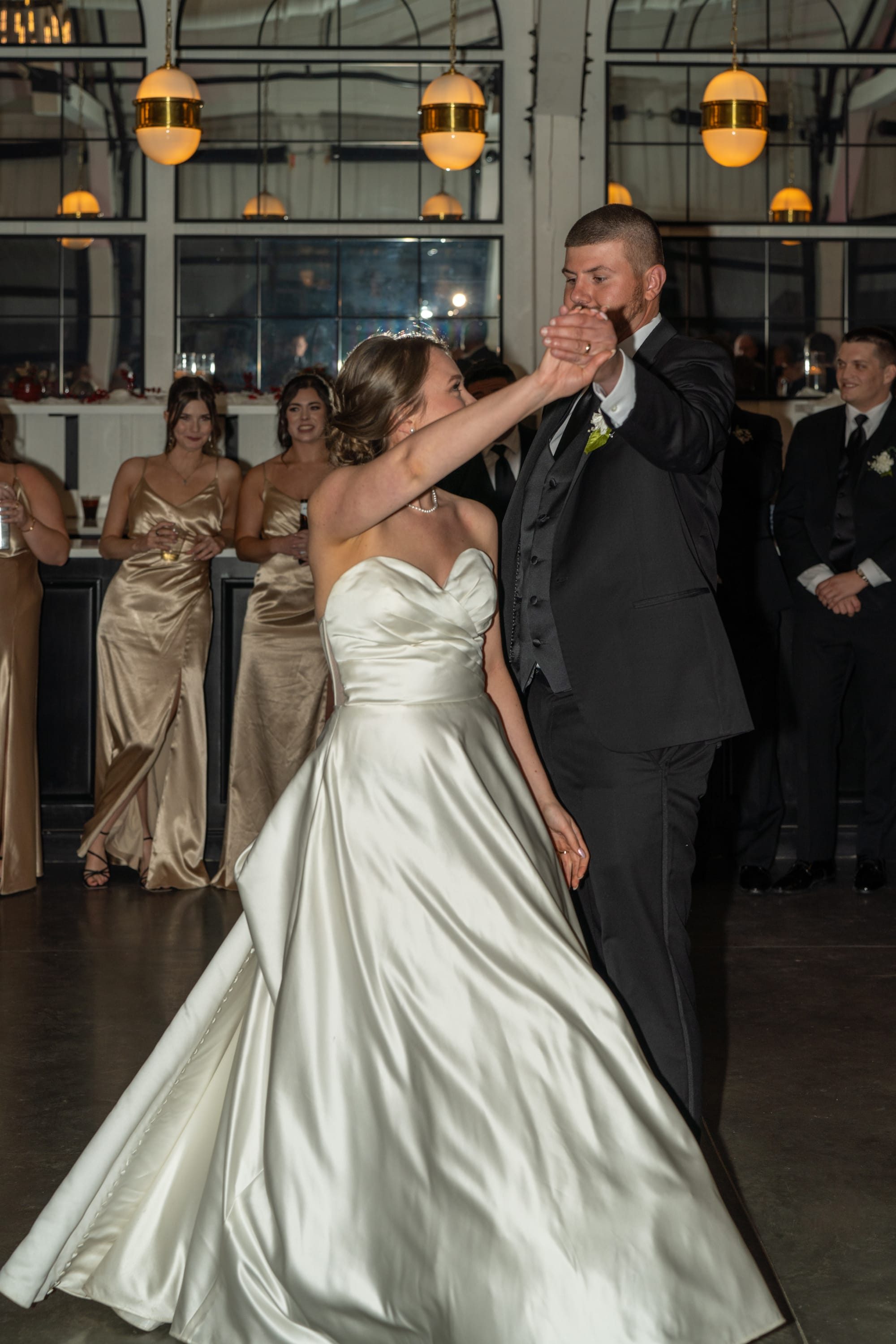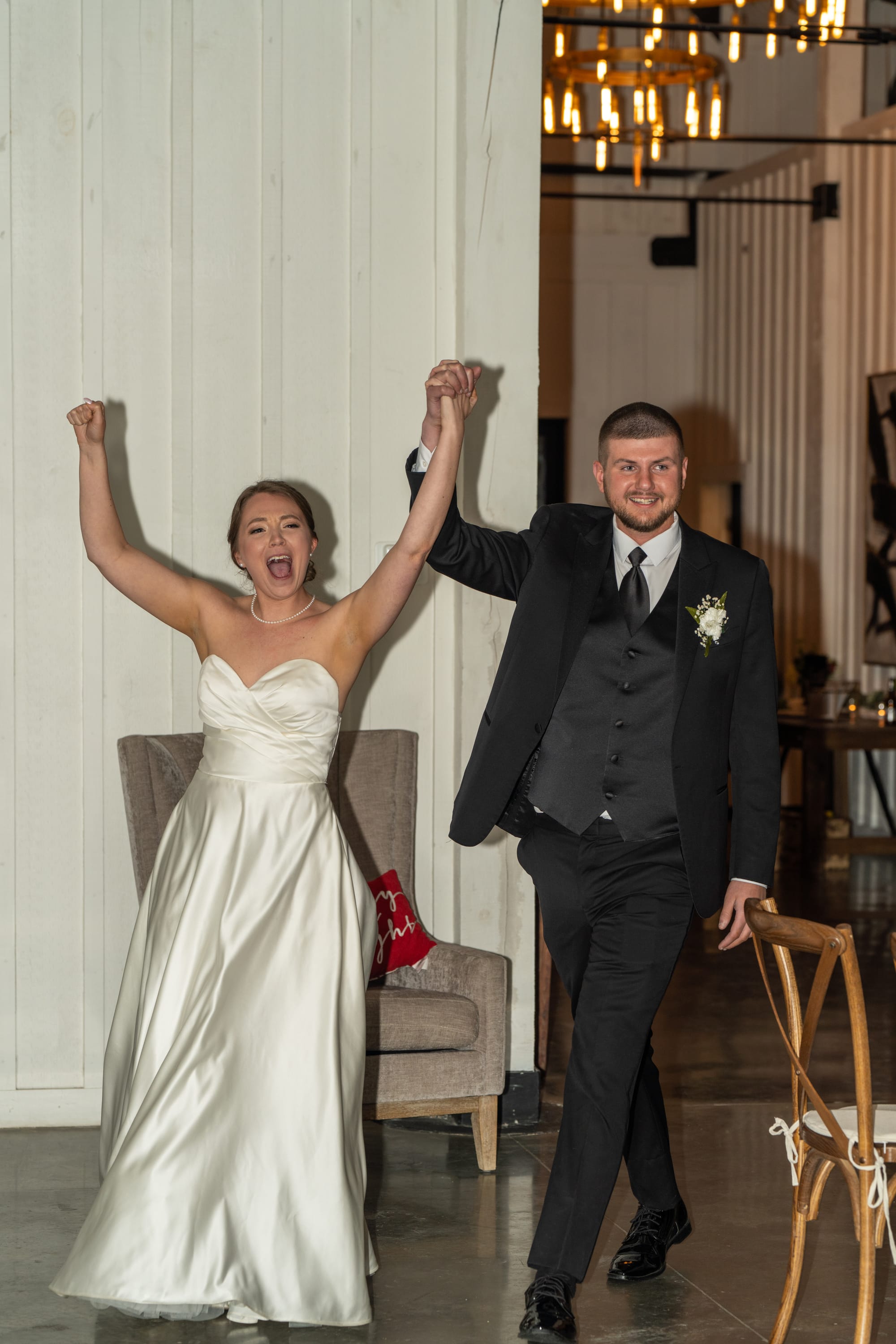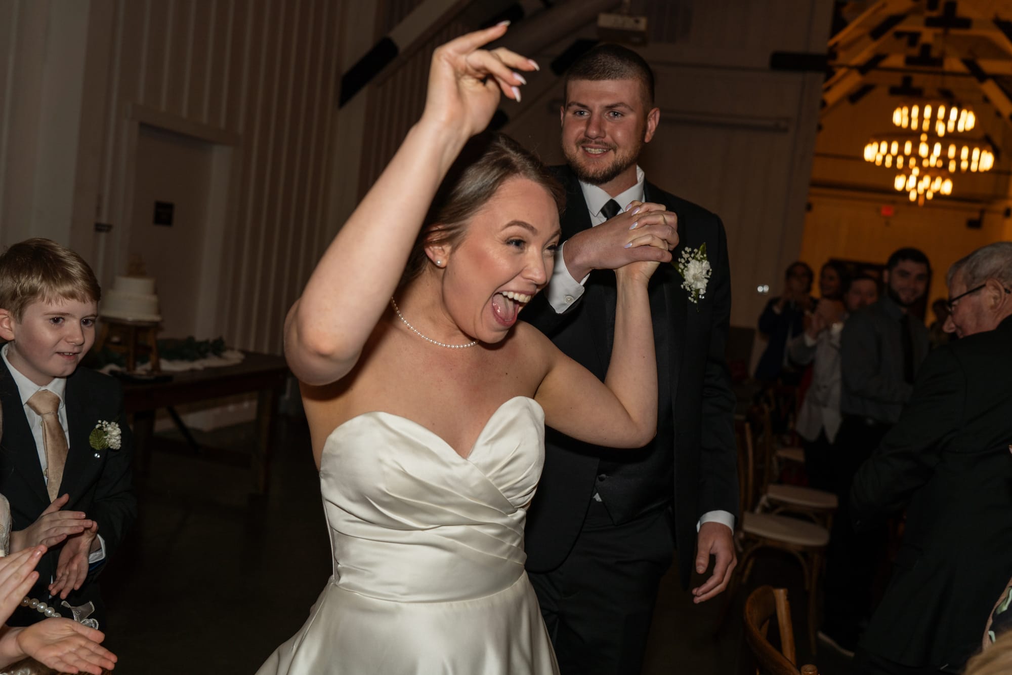 After Cassondra & Michael of Washington, DC said their "I do's," they made their way to the elegant Grand Ballroom at the Hotel Syracuse where they were introduced through a wedding party tunnel! The bride, CJ, is a university cheer coach and the choreographed dances were fantastic! Photo credit: Brytney Parks.