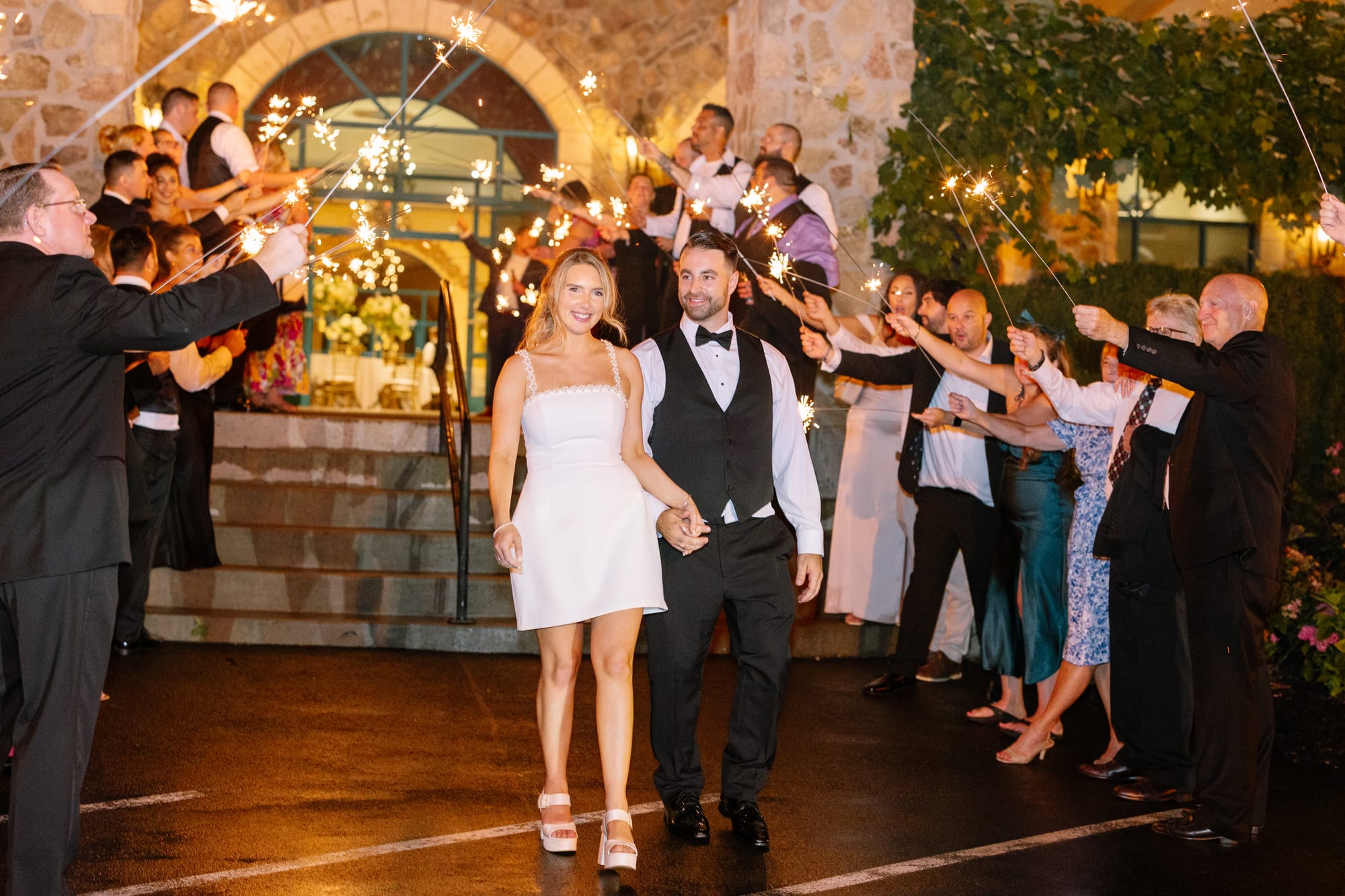 The ceremony and reception were held at the beautful Ventosa Vineyards in Geneva, NY overlooking Seneca Lake in July of 2025. After the ceremony, Lexi and Mike arrived to the reception and shared their first dance on the clouds, a packed dance floor and a picture perfect sparkler exit ended the evening! Photo credit: JustinTibbittsPhotography.com