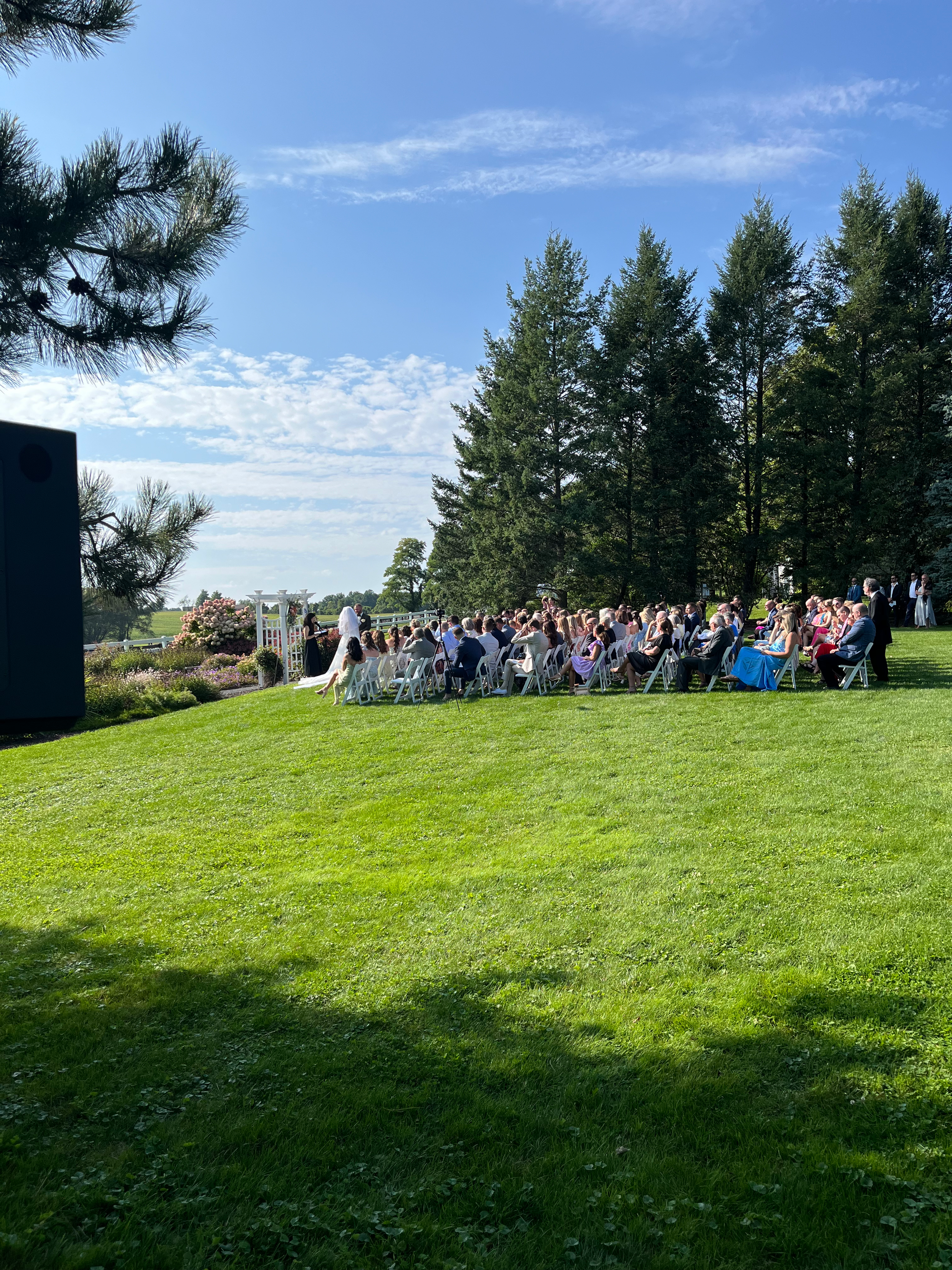 WHAT a day in Skaneatles, NY with Jenna & Bradley! A beautiful outside ceremony at this B&B and horse farm on August 24th, 2024. We had a full dance floor all night long under the tent with uplights adding to the celebartory atmosphere! They even brought their dog Juni (sort of :) Photo credit: https://www.emmabauso.com/
